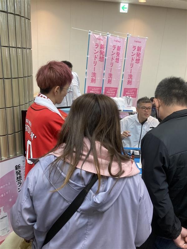 口紅やシミ汚れの実演では繊維から汚れを外すところをご覧いただき『シミや襟袖に使ってみるよ』と言っていただいたり、『子供の上履きを洗う所だったのよ』と喜んでいただきました。また『CMでよく流れているから買いにきたよ』とリピートしていただくお客様もおりました。少しずつではありますがフレシャーが認知されている喜びを実感できました。